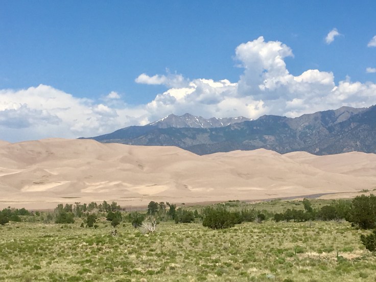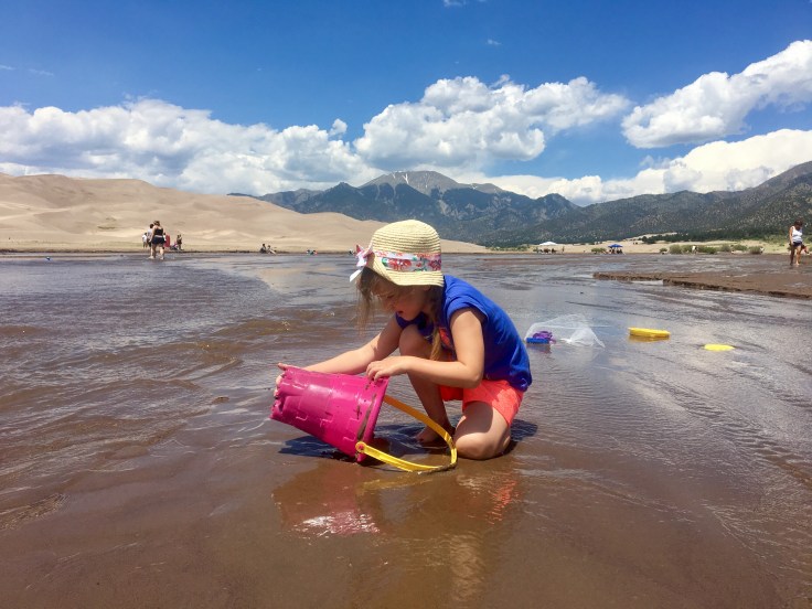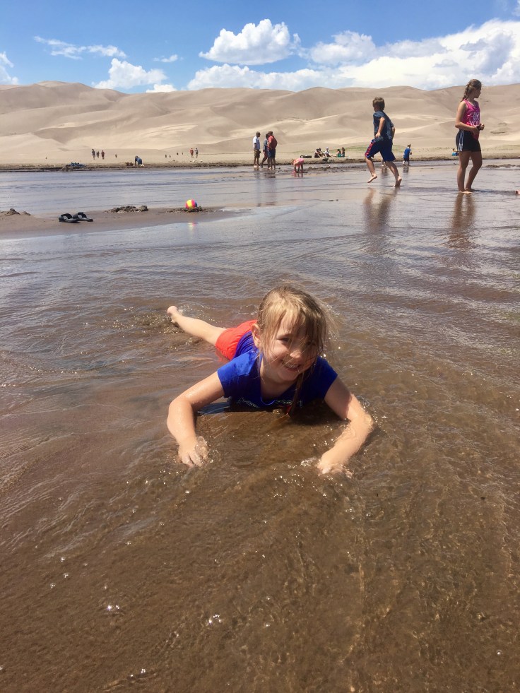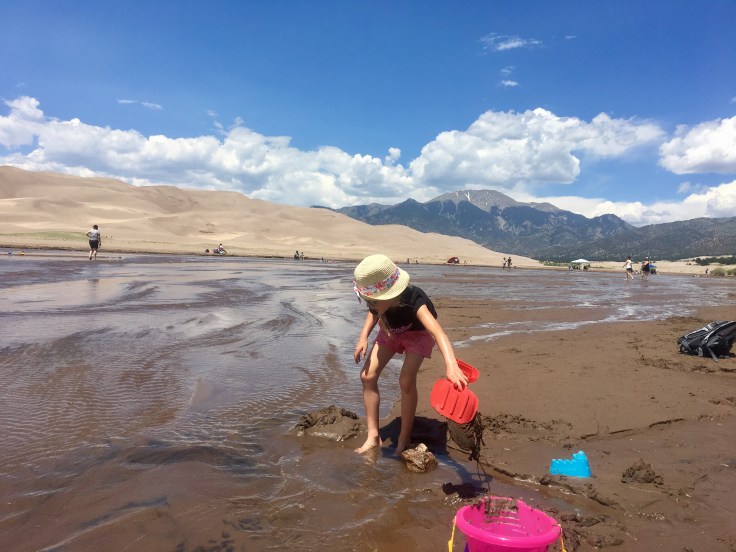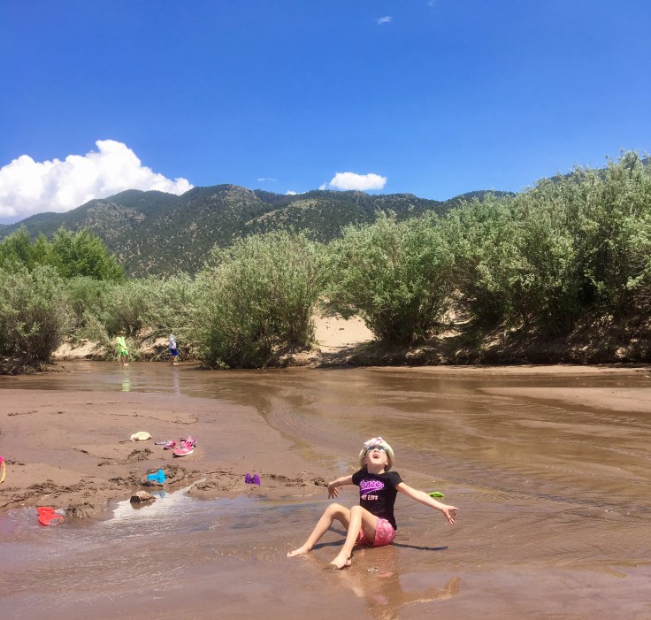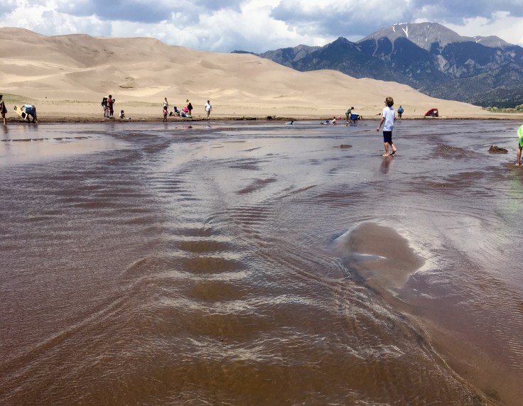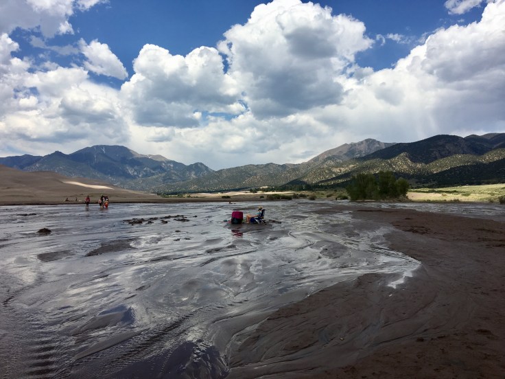 If you plan to visit in the summer as we did, there are a few precautions to take, and please do. The sand here can reach temperatures of 150 degrees! OUCH! So, make sure you have proper closed toe shoes, and consider hiking or sand sledding in the early morning or evening. If you visit during the time when Medano Creek is sweeping across the landscape, be aware that mosquitoes are also sweeping across the creek when water levels are low, especially in June. They are literally swarming by the banks. This was something I wished I had known before coming to better prepare. BRING bug spray. This is a MUST!!! We were warned at the visitor center, but didn’t take it too seriously. Take it seriously. Trust me. If you stay away from the banks near the creek and swim more in the center of the creek (it was shallow in June), you will be better off.