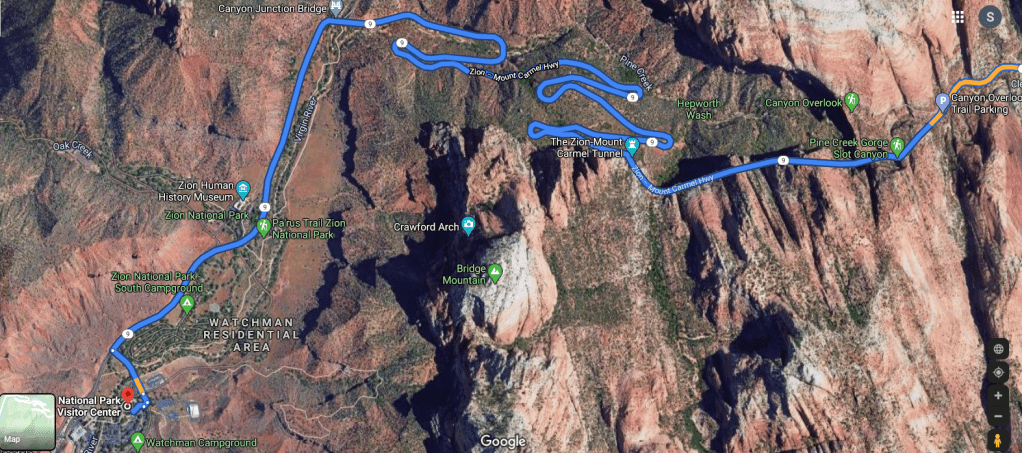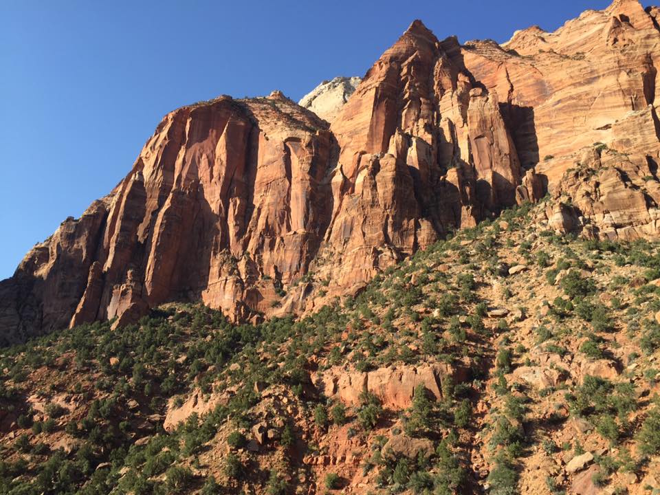 The views on the way into the park from the east entrance are absolutely breathtaking! We entered this way so that we could experience the winding series of switchbacks into the park on Mt. Carmel Highway 9 and then make our way through the historic mile long Mt. Carmel tunnel. If you take this way, be sure to stop at Canyon Overlook before entering the tunnel! To learn more about the history of Mt. Carmel Highway 9 and the Mt. Carmel Tunnel, check this out: History of Mt. Carmel Highway