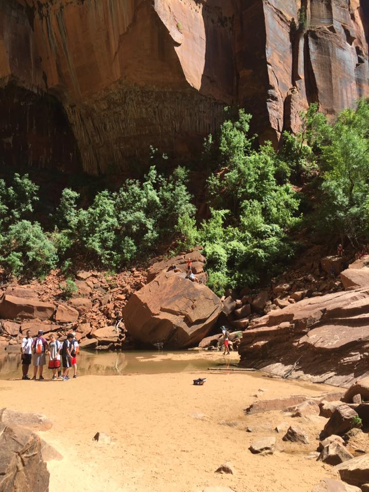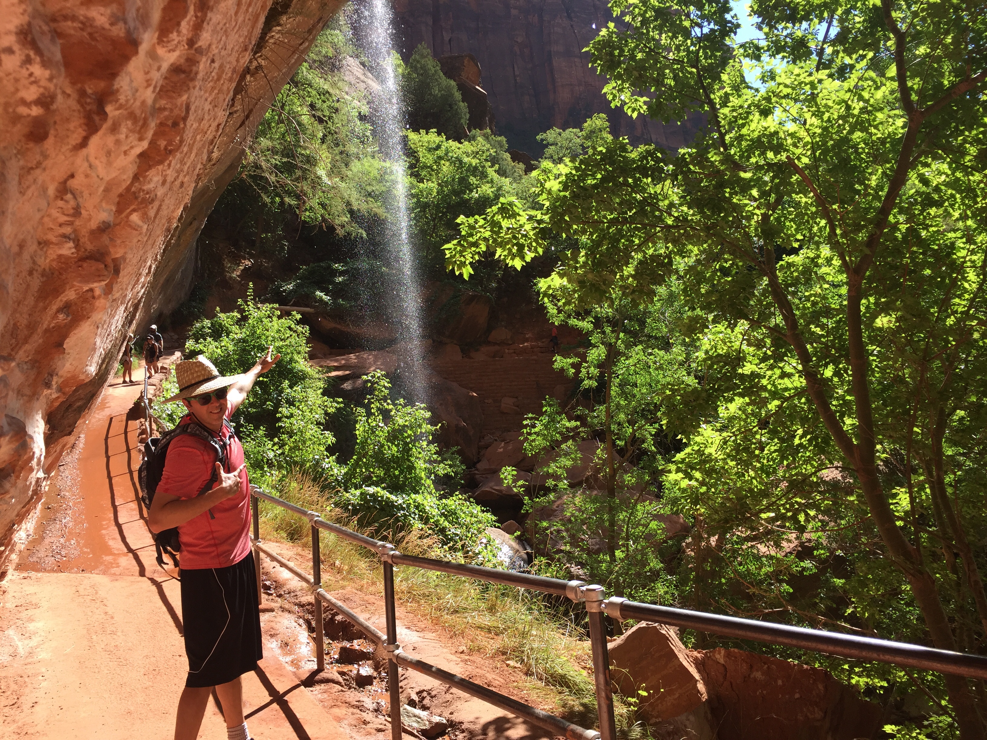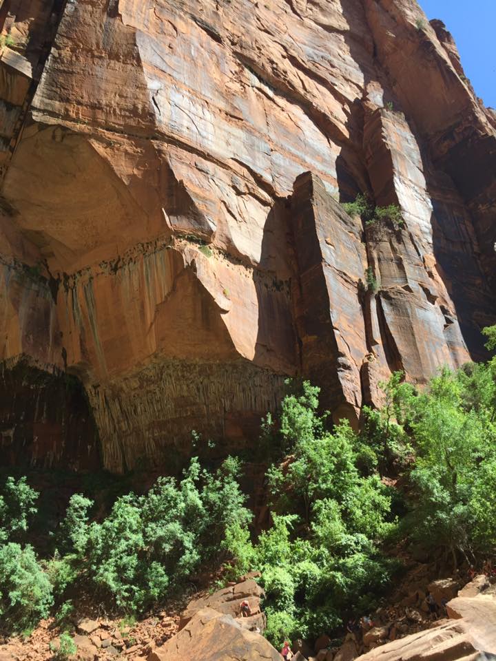 Weeping Rock Trail (0.4 roundtrip): This is the shortest hike in the park, and is great for kids. It is an easy hike, with stairs and some steep inclines going up; mostly paved though not wheelchair accessible. Along the trail, you can see lush hanging gardens, and a steady stream of water trickling down from Weeping Rock. If there is enough water, you can even see a waterfall! If you decide to go under the alcove, expect to get a little wet! It was refreshing on a hot summer day!