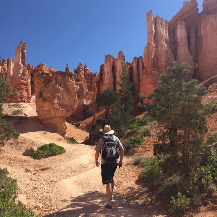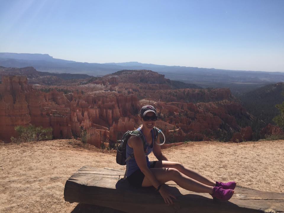 Rim Trail (0-11 miles): We picked up the Rim Trail behind Bryce Canyon Lodge. This trail extends from Fairyland Point to Bryce Point (5.5 miles) and has several steep elevation changes. At the intersection of the Rim Trail and the start of the Queens Garden Trail, you can view one of the most spectacular viewpoints in all of the park, Sunrise Point. We stopped to breathe in the fresh (and hot) air here, and enjoyed the sweeping views of Fairyland Canyon and the magnificent hoodoos.