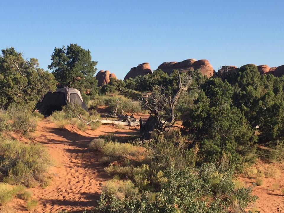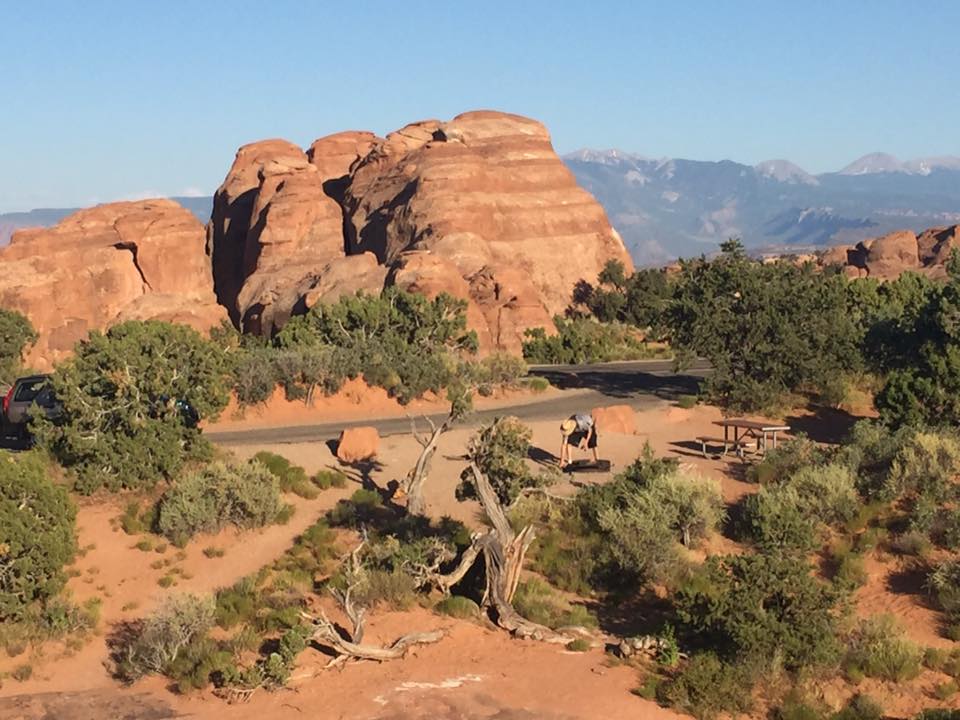 Driving into this park was stunning. Colors of red and orange, towering pinnacles, slabs of slickrock, balanced rocks and arches in the distance, clear skies. I couldn’t wait to explore this park that holds over 2,000 natural stone arches! One of my favorite parts of this park was actually the campground area. Devil’s Garden Campground is the only campground within Arches and is incredibly popular. Booking early is highly recommended to secure a spot, especially in the summer months. You can reserve tent, RV (40 ft and under), and ADA accessible sites at Devil’s Garden Campground.
