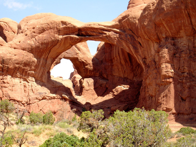 If you are feeling energetic and do not have a fear of heights, Double O Arch is further down the trail past Landscape Arch (4.2 miles out and back), but requires rock scrambling, climbing across slickrock with steep drop offs, and rocky footing.